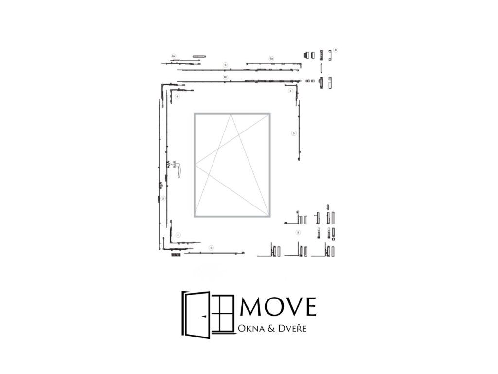 Do poznámky (v posledním kroku v košíku) k objednávce uveďte přesné výrobní rozměry, VIZ nížeObsah balení: rámové uzávěry, převod Dorn 15 mm, rámové a křídlové nůžky, panty, rohové vedení, prodlužovací díly, bílá klika a bílé krytky pantů.