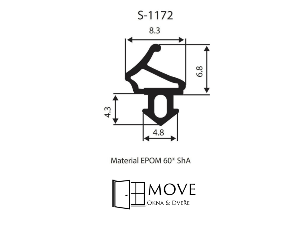 Těsnění S-1172 do PVC oken, profil ALUPLAST, rám/křídlo, materiál černé EPDM