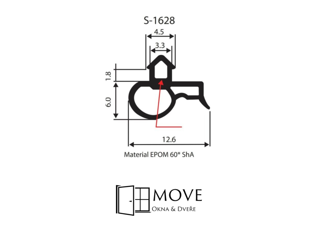 Těsnění S-1628 do PVC oken, profil DECCO, rám/křídlo, materiál černé EPDM