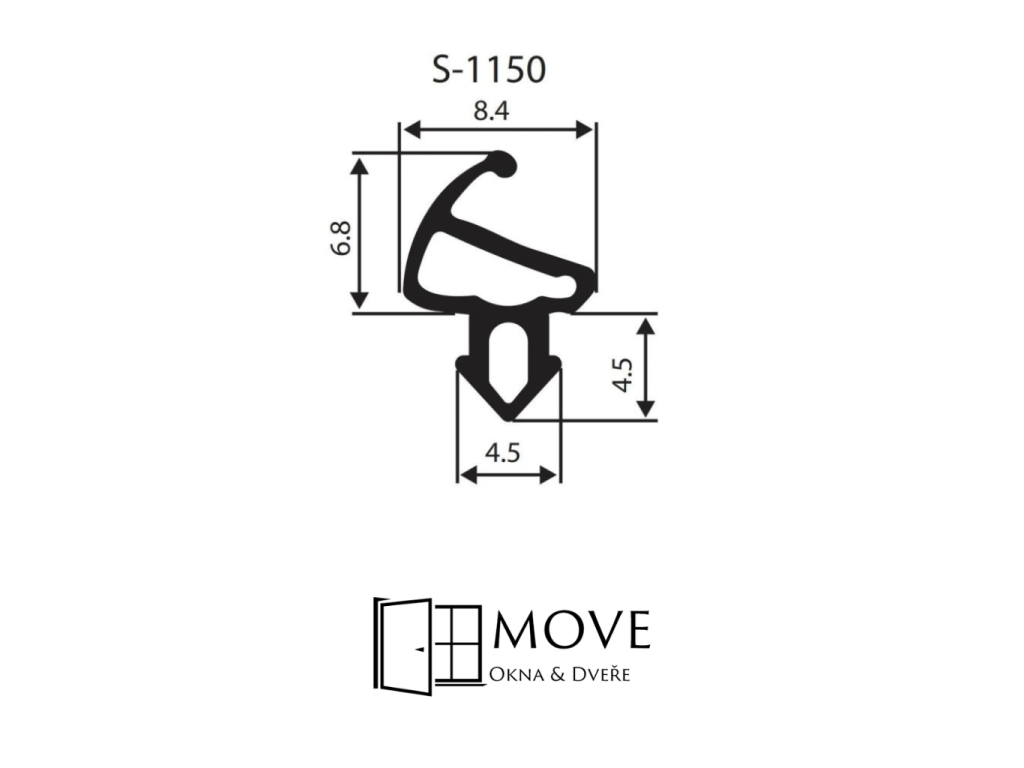 Těsnění S-1150 do PVC oken, profil KÖMMERLING, rám/křídlo, materiál černé EPDM