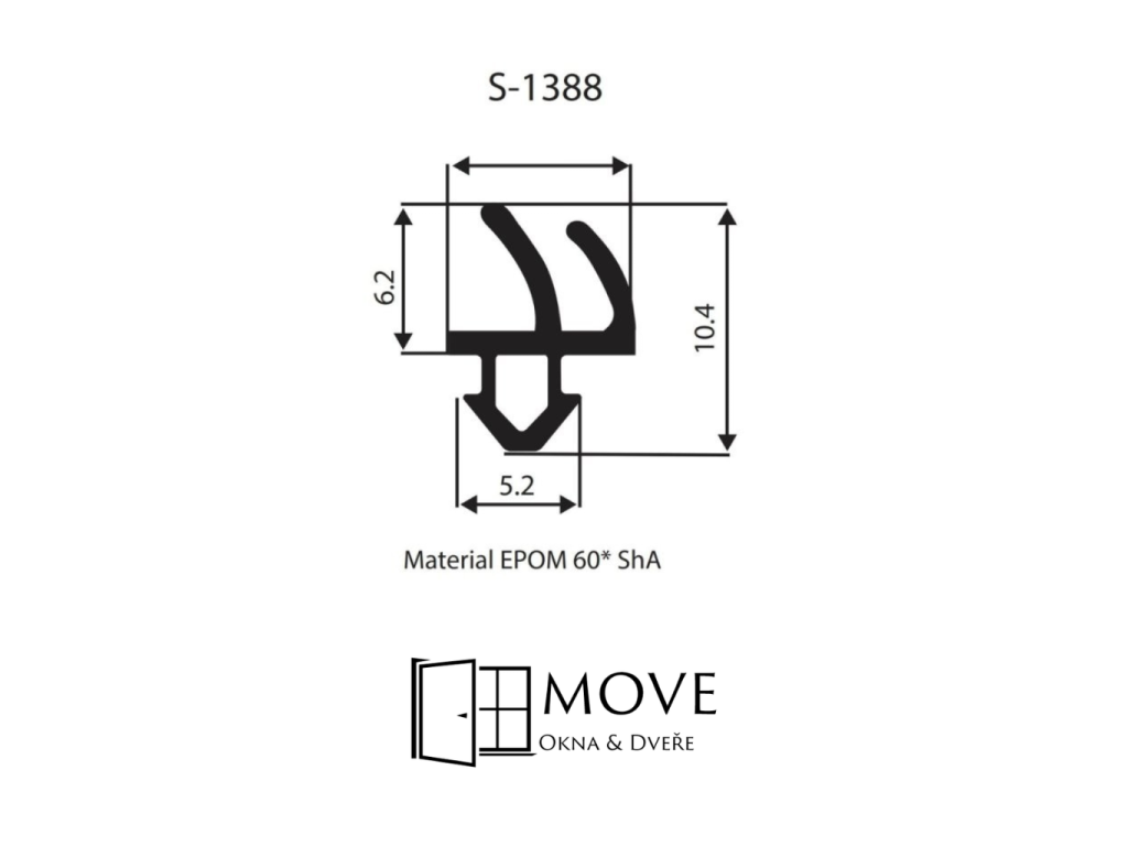 Těsnění S-1388 do PVC oken, profil REHAU, rám/křídlo, materiál černé EPDM